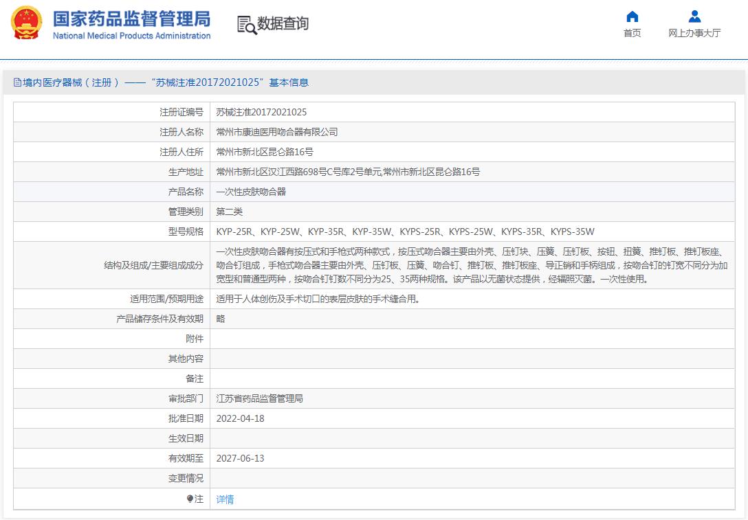 ***次性皮肤吻合器,操作简单,缝合速度快,质量高,术后切口愈合好,疤痕小;适用于医院各外科的表皮缝合。
