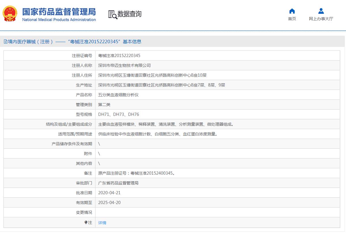 血液仪 注册证编号:粤械注准20152220345