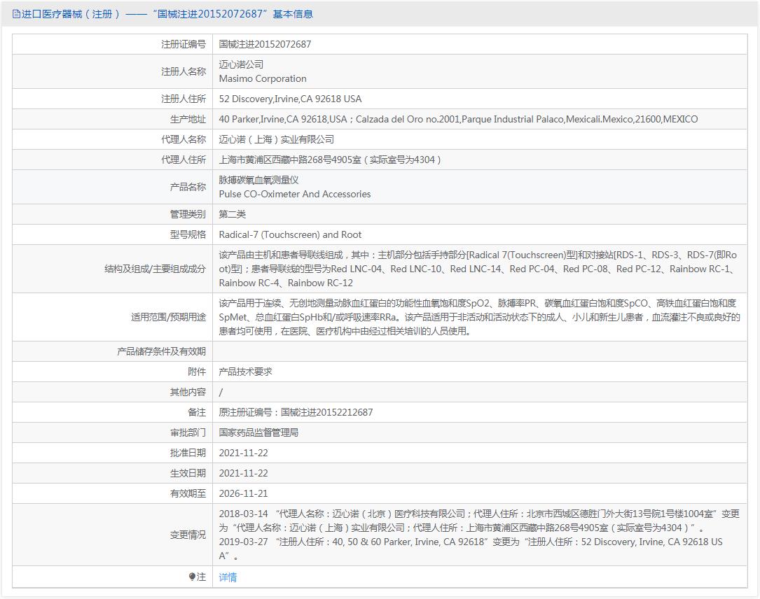 迈心诺 Radical-7血氧监测仪,/床边碳氧*