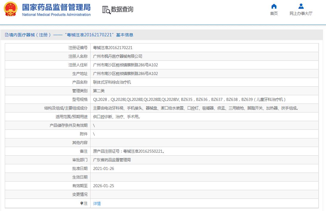 牙科治疗仪 注册证编号:粤械注准20162170221